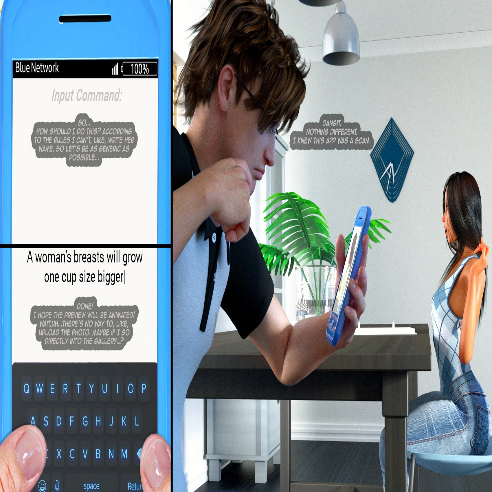 AlexGTS – Blue Phone: Day 1 3D Comics alexgts big ass breast expansion growth Milf shrinking tall girl