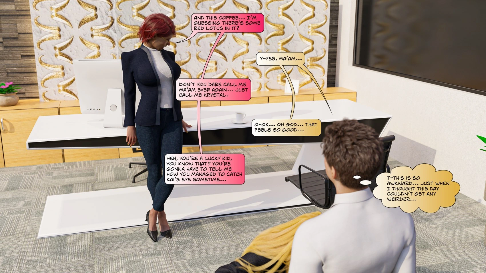 Antalore42 – Emma Corruption 30 3D Comics anal antalore42 big dick blackmail blowjob business suit corruption cunnilingus double penetration glasses Milf office prostitution tall girl tall man transformation