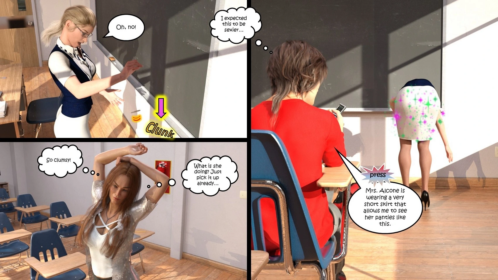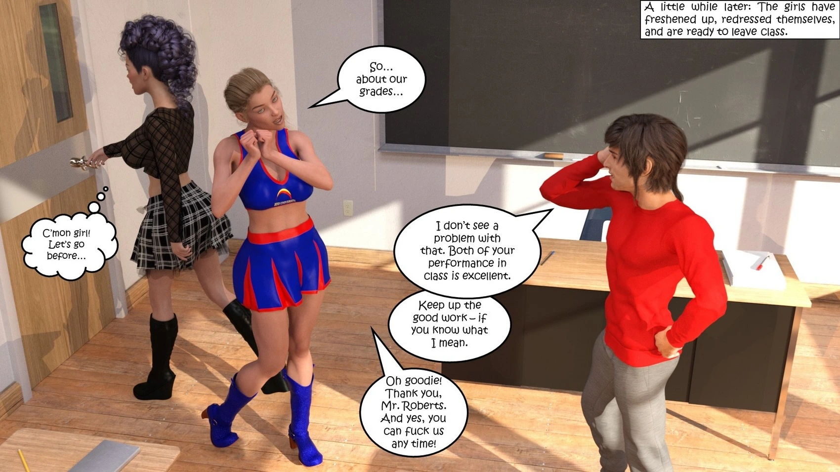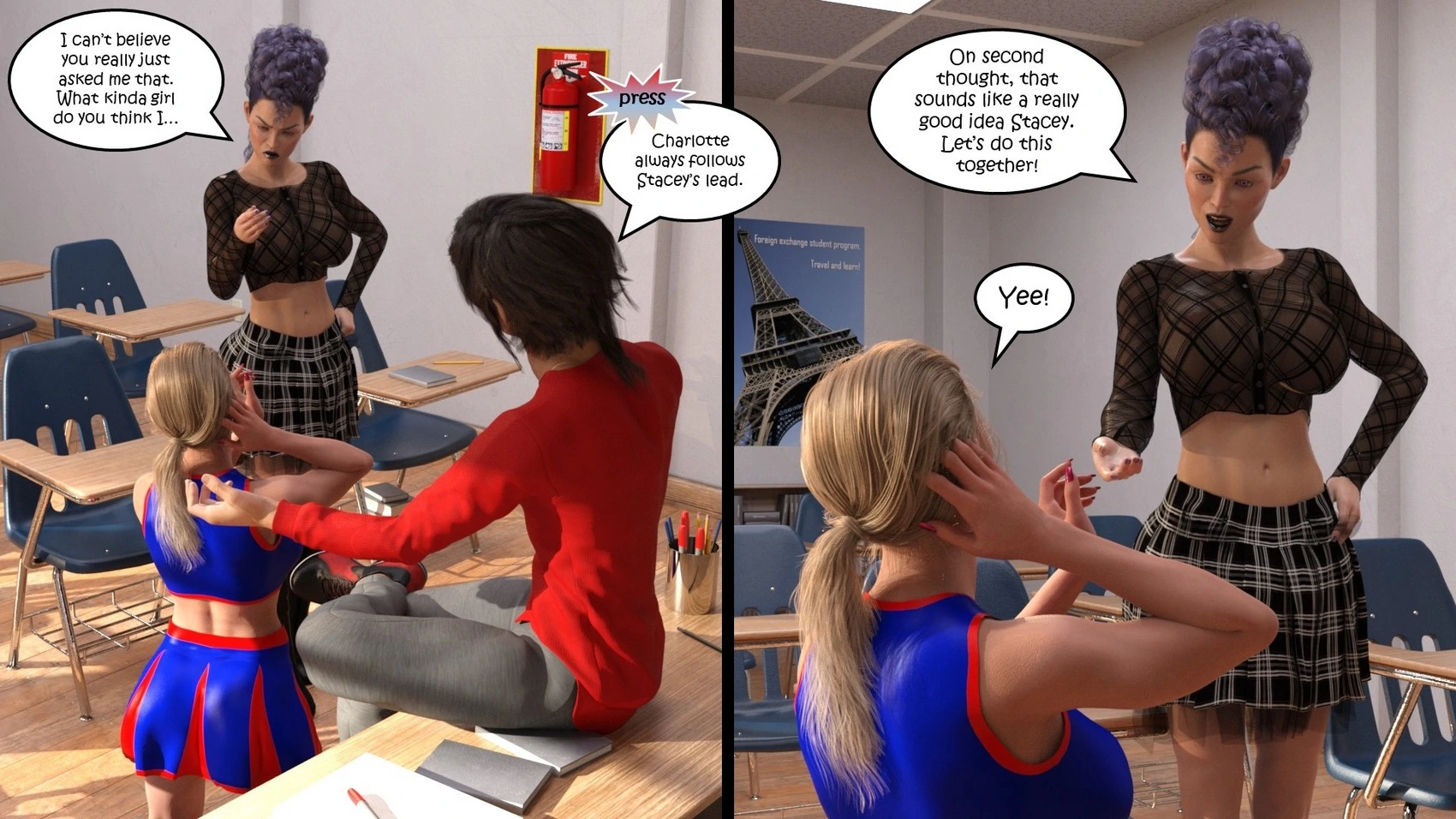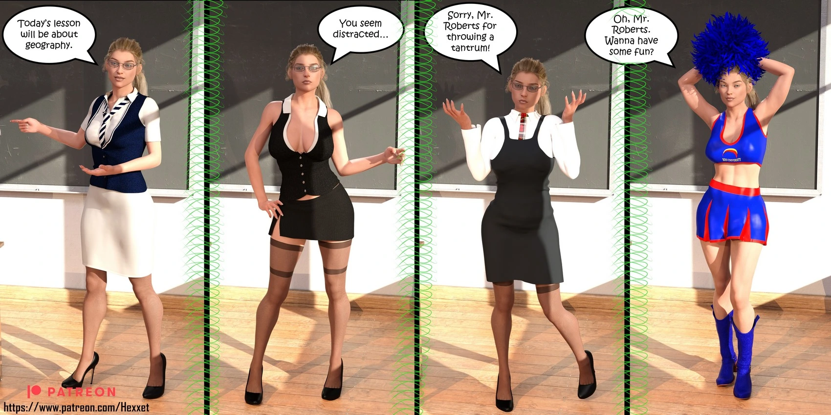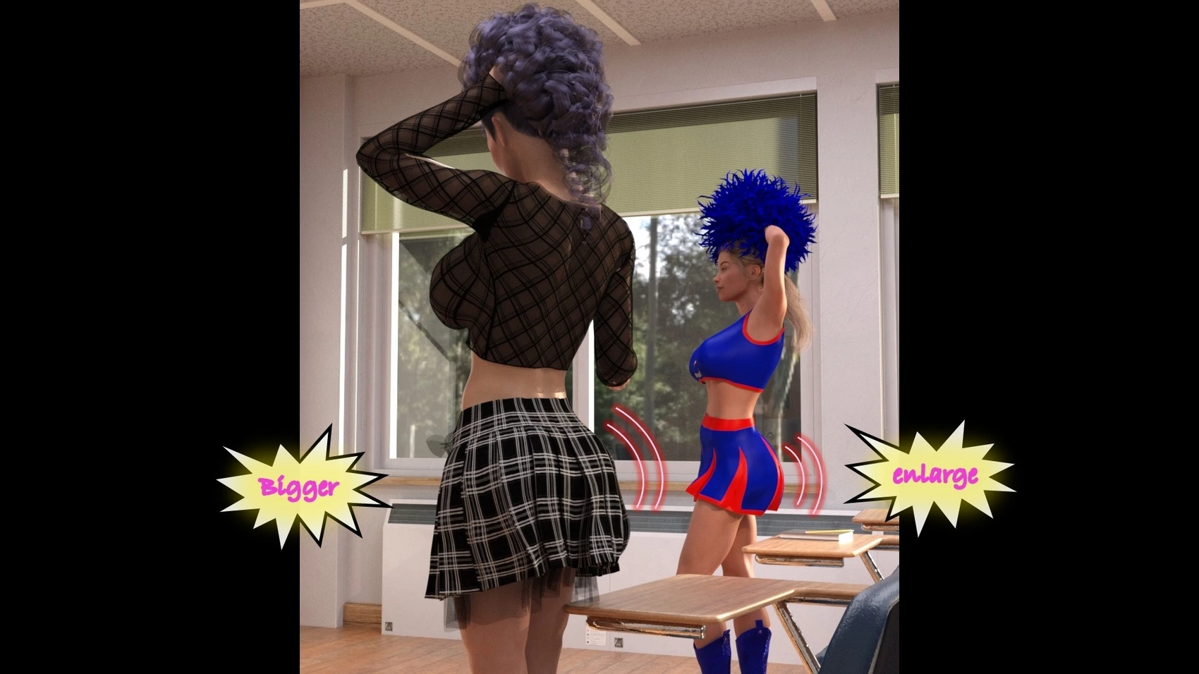 Dictaphone at school – Hexxet 3D Comics, Mind Control ass expansion Big Breasts breast expansion cheerleader hexxet hexxetval threesome transformation