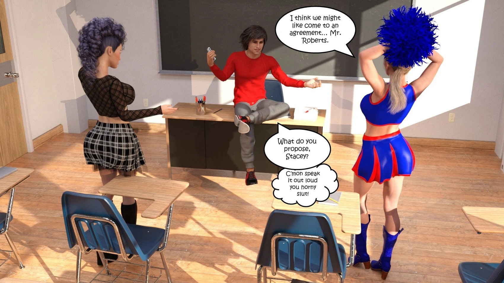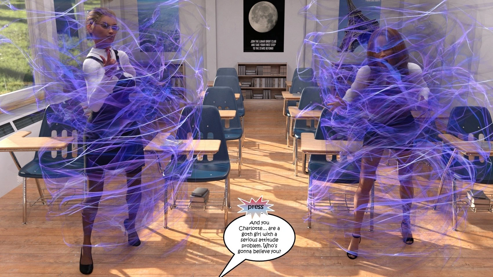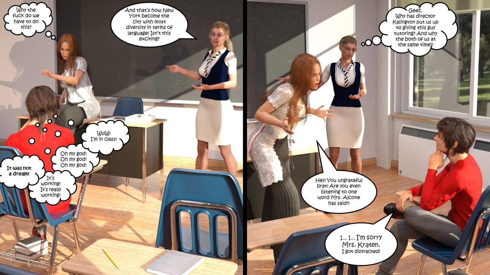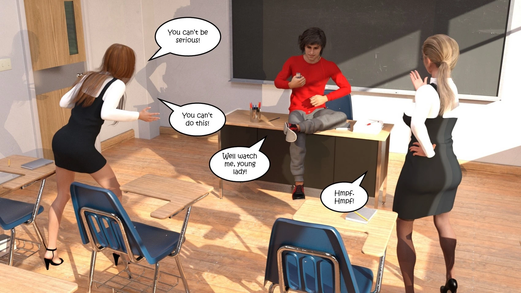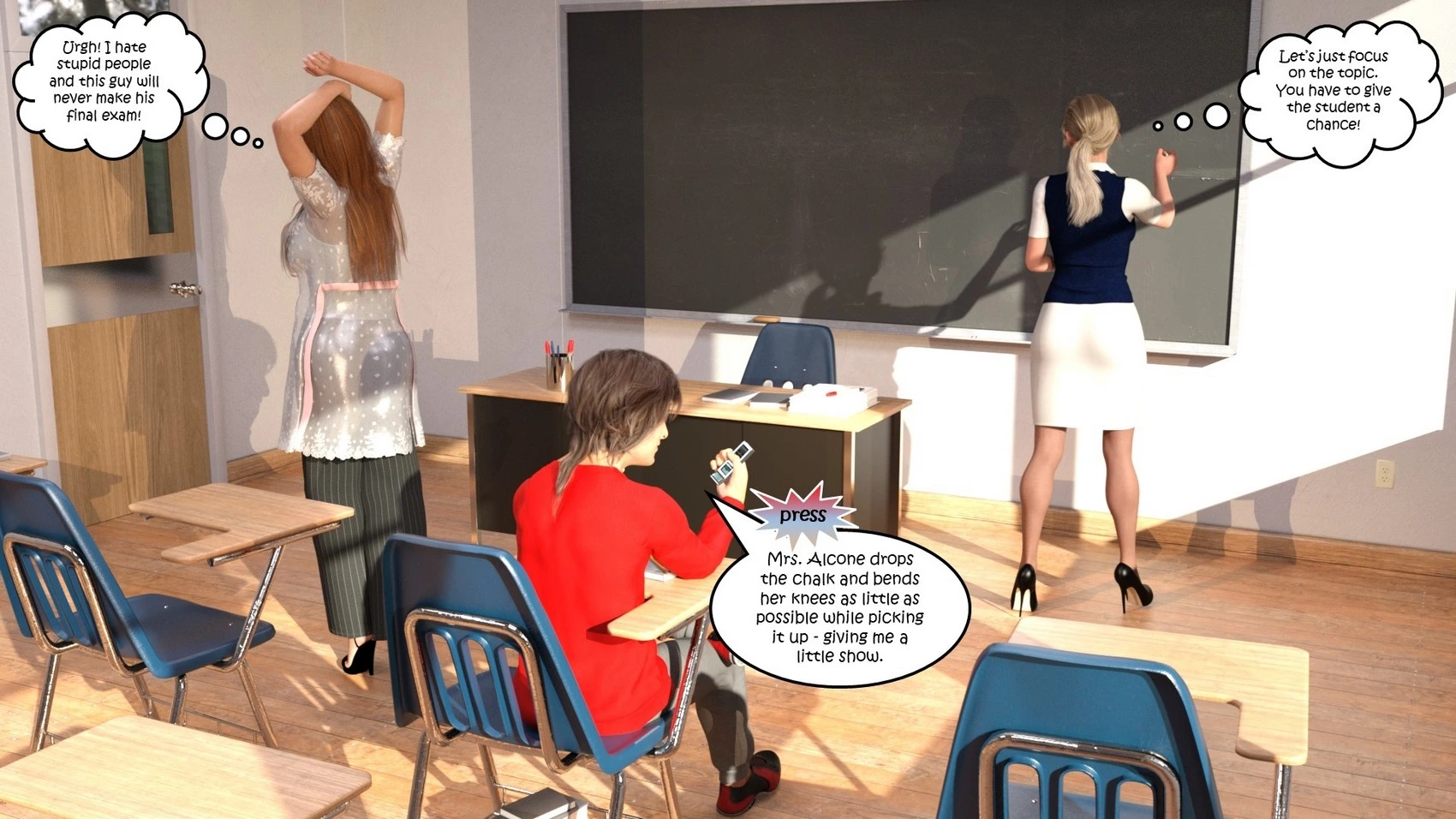 Dictaphone at school – Hexxet 3D Comics, Mind Control ass expansion Big Breasts breast expansion cheerleader hexxet hexxetval threesome transformation