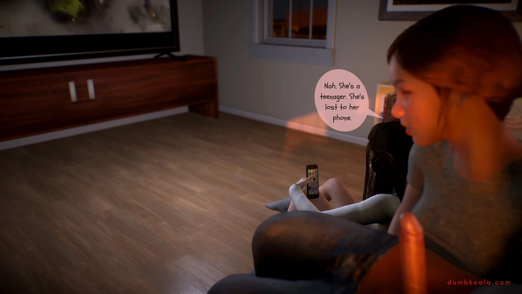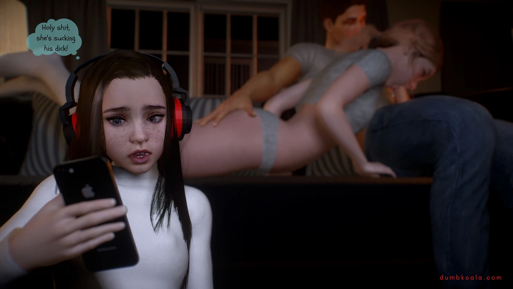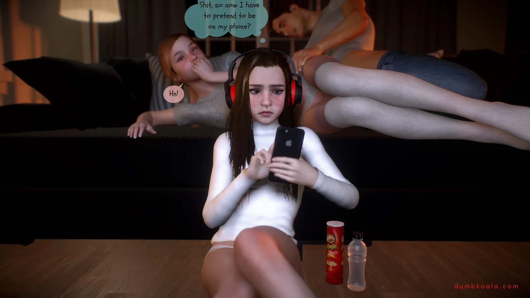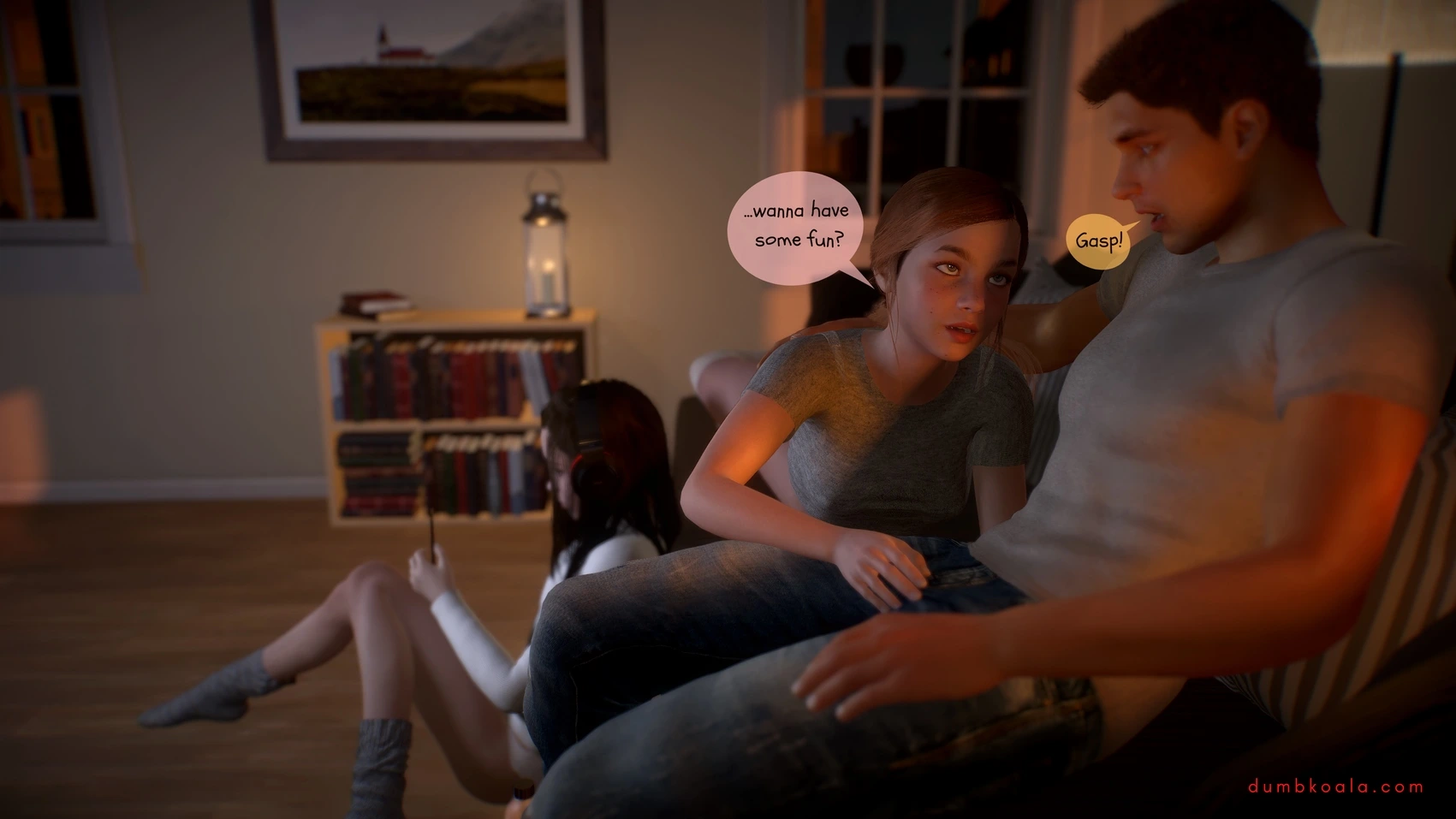 DumbKoala – Movie Night Part 1 3D Comics blowjob Cumshot dumbkoala ffm threesome lesbian Masturbation small tits sole female Voyeurism