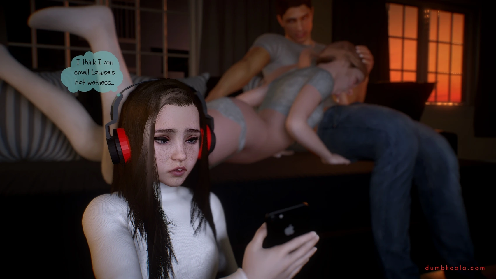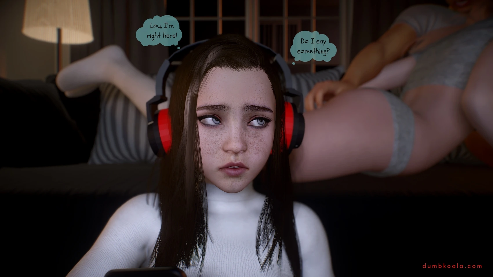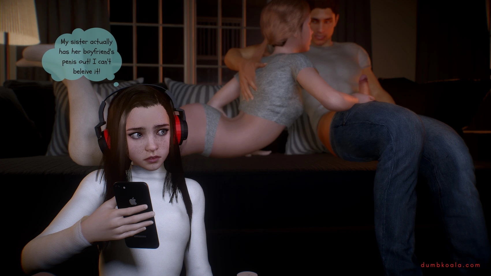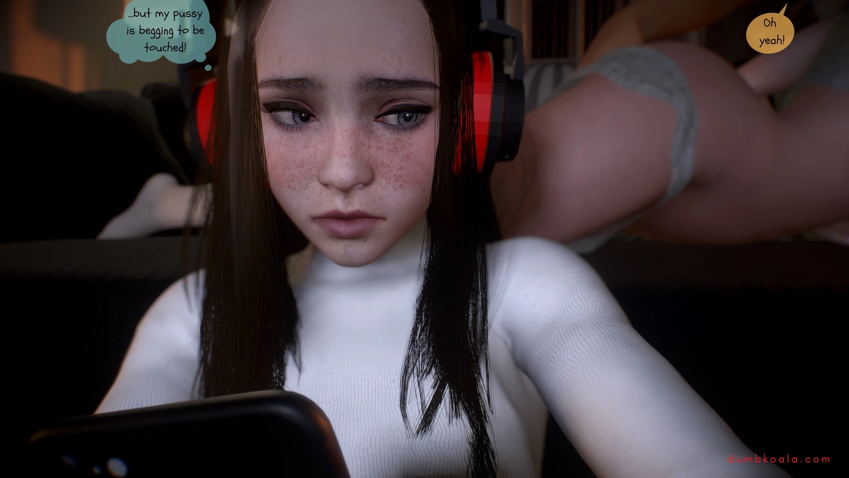 DumbKoala – Movie Night Part 1 3D Comics blowjob Cumshot dumbkoala ffm threesome lesbian Masturbation small tits sole female Voyeurism
