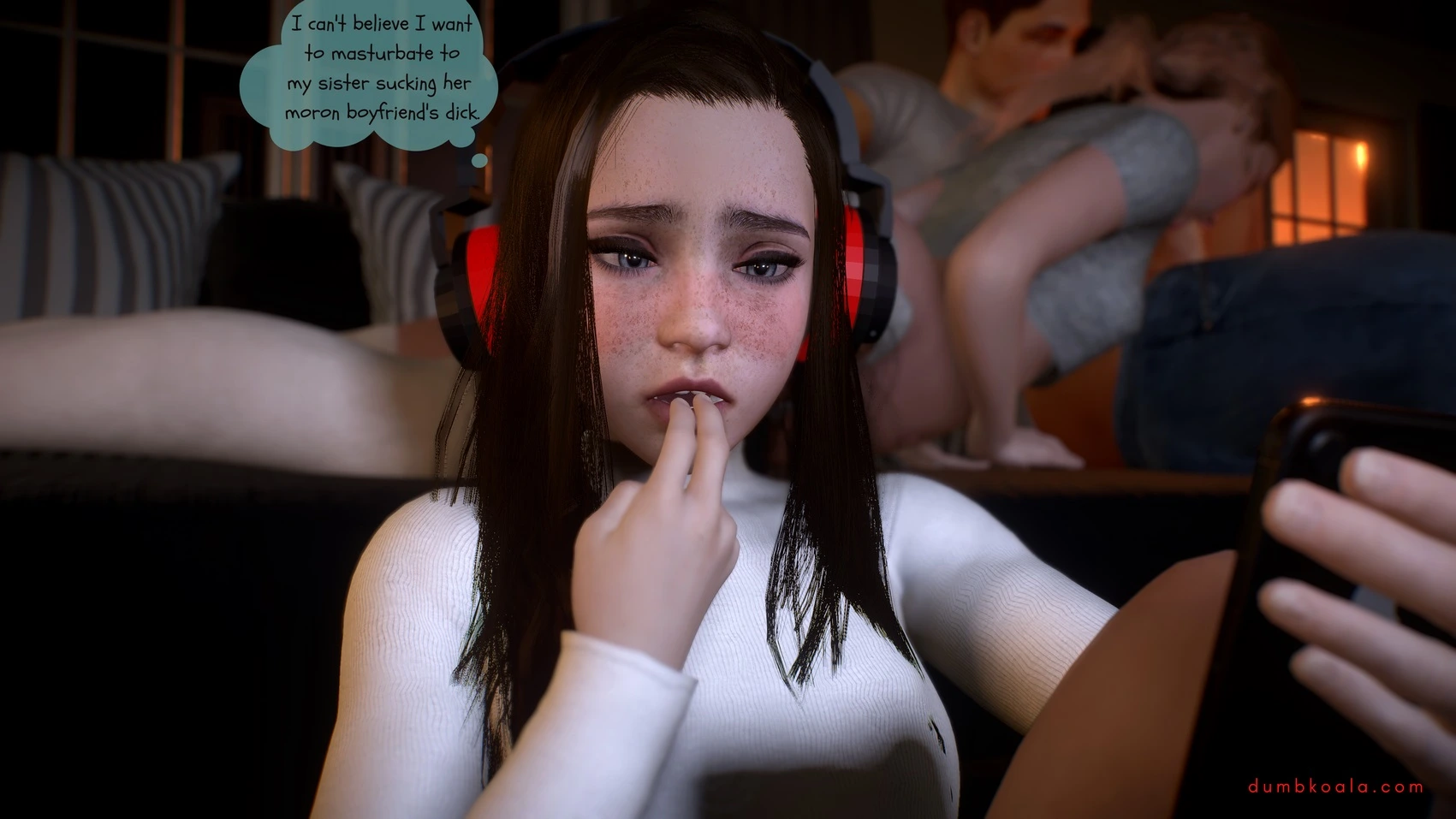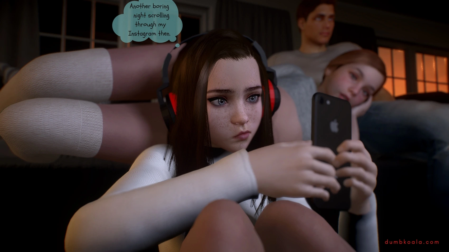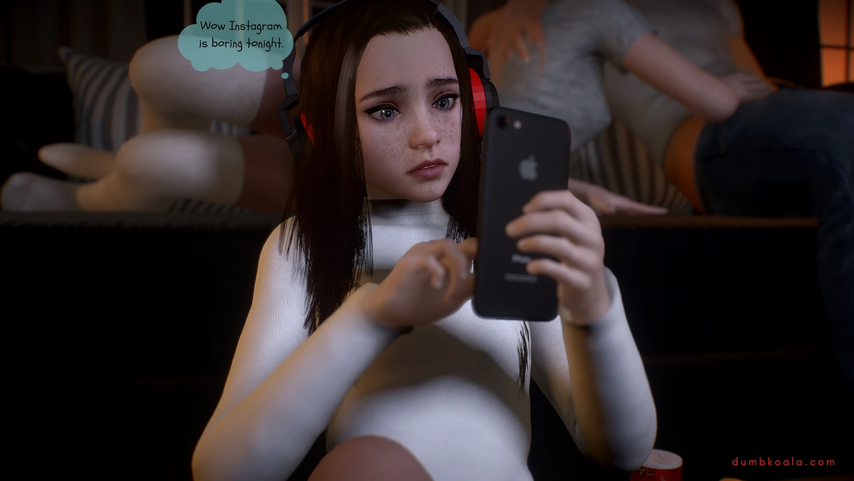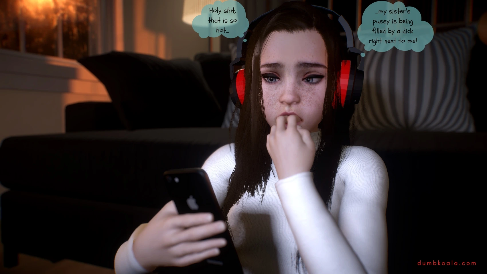 DumbKoala – Movie Night Part 1 3D Comics blowjob Cumshot dumbkoala ffm threesome lesbian Masturbation small tits sole female Voyeurism