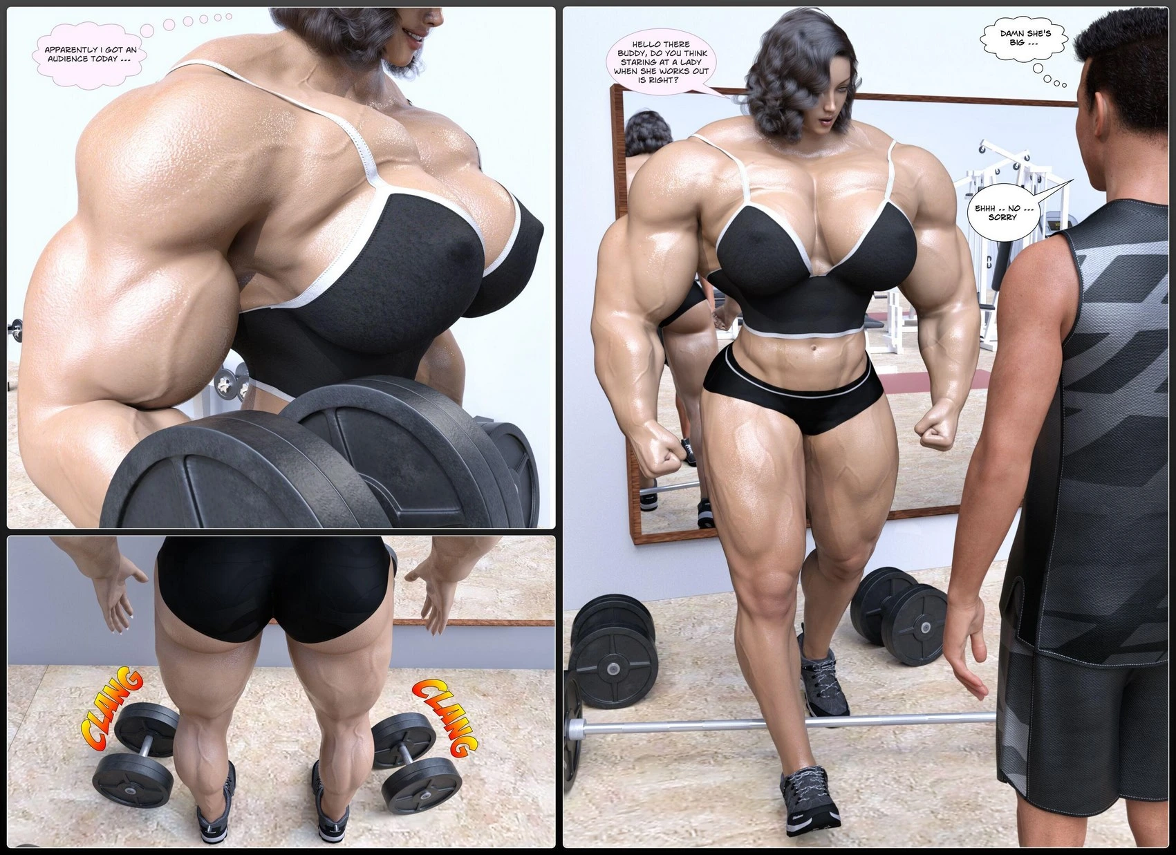 Kycolv – Gym Domination 3D Comics big ass Big Breasts giantess growth kycolv mini guy muscle tall girl