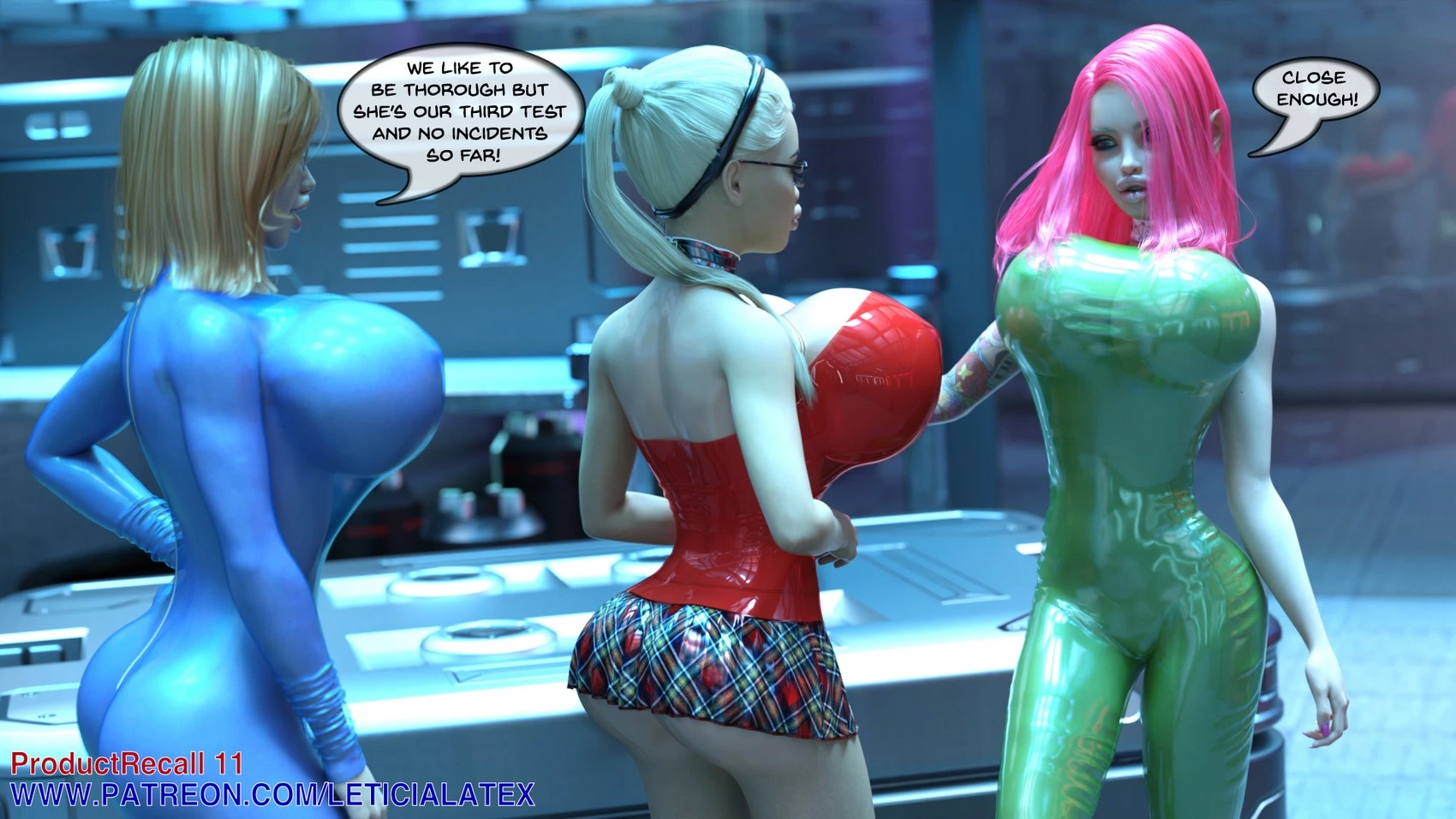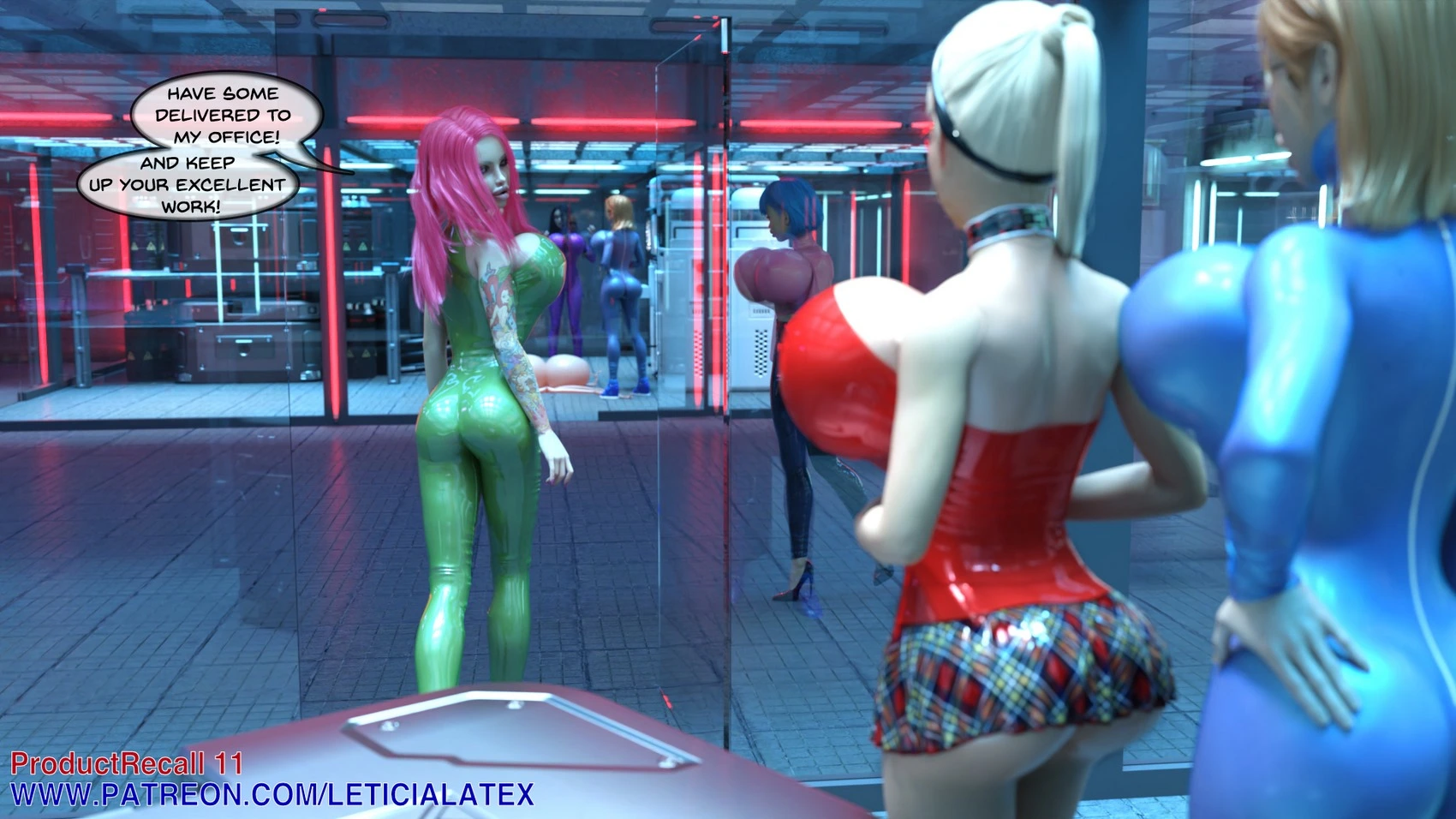 Leticia Latex – Product Recall 11 3D Comics ass expansion big ass bimbofication breast expansion gender-bender growth Leticia Latex shemale transformation