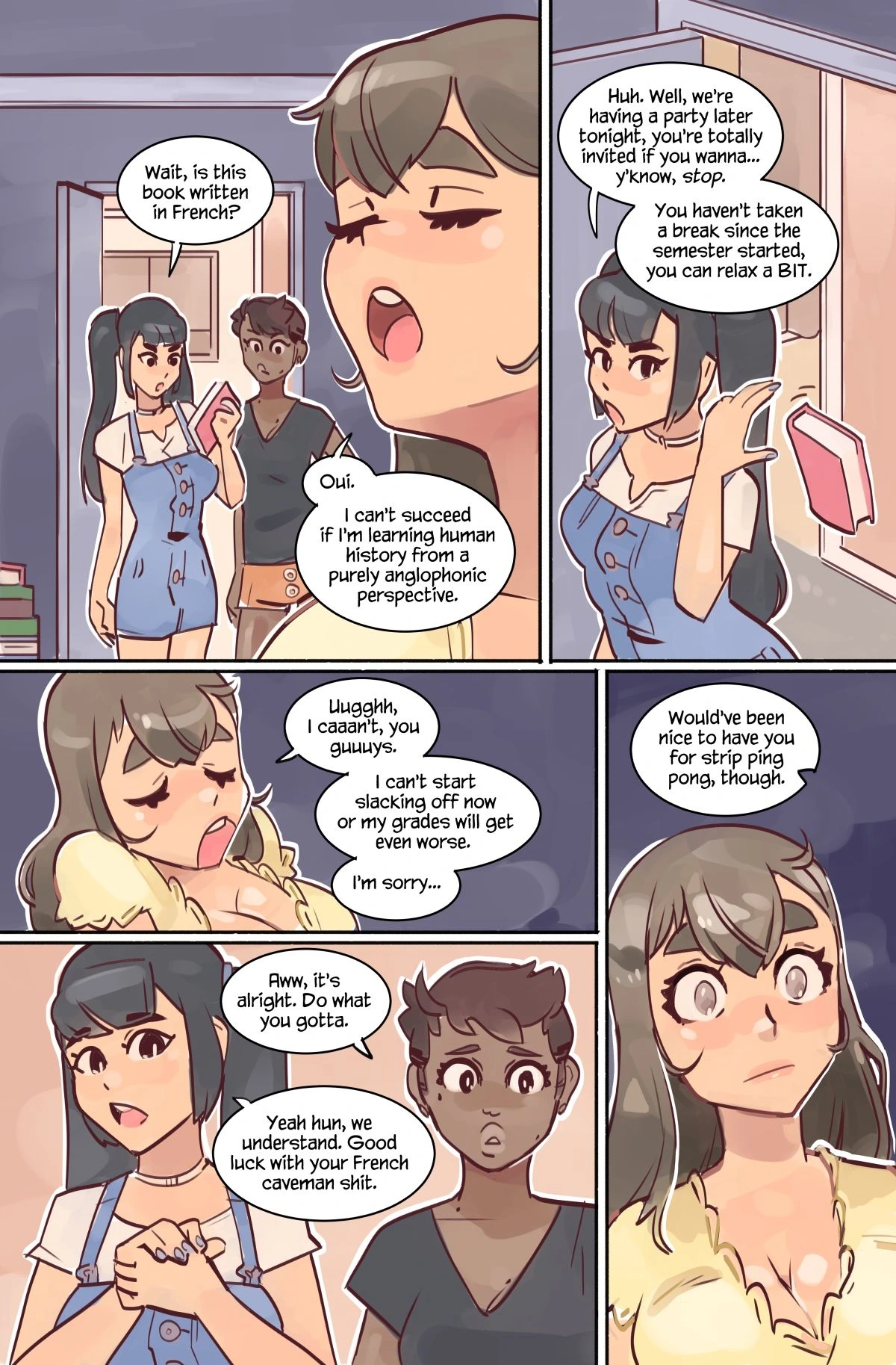Line – Study Break 1 Porn Comics Big Boobs Full Color Interracial lesbian licking pussy line Masturbation sex toys stockings student
