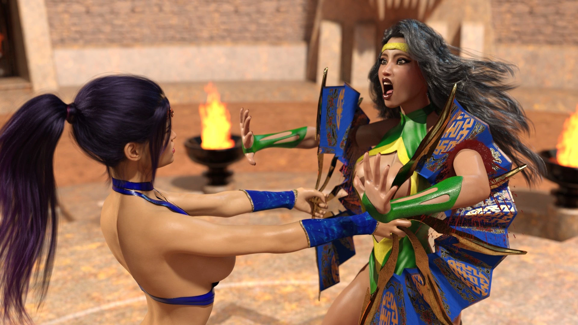 Mortal Kombat – Kitana vs. Orchid 3D Comics 3D Big Boobs Big Breasts bondage fight lesbian Mortal Kombat parody sex toys