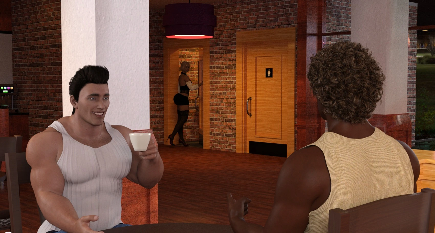 Nizete at the coffeeshop by TharinTurambar 3D Comics Big Boobs blowjob Cumshot dirty sex group Interracial public sex seduced sex in toilet tharinturambar threesome