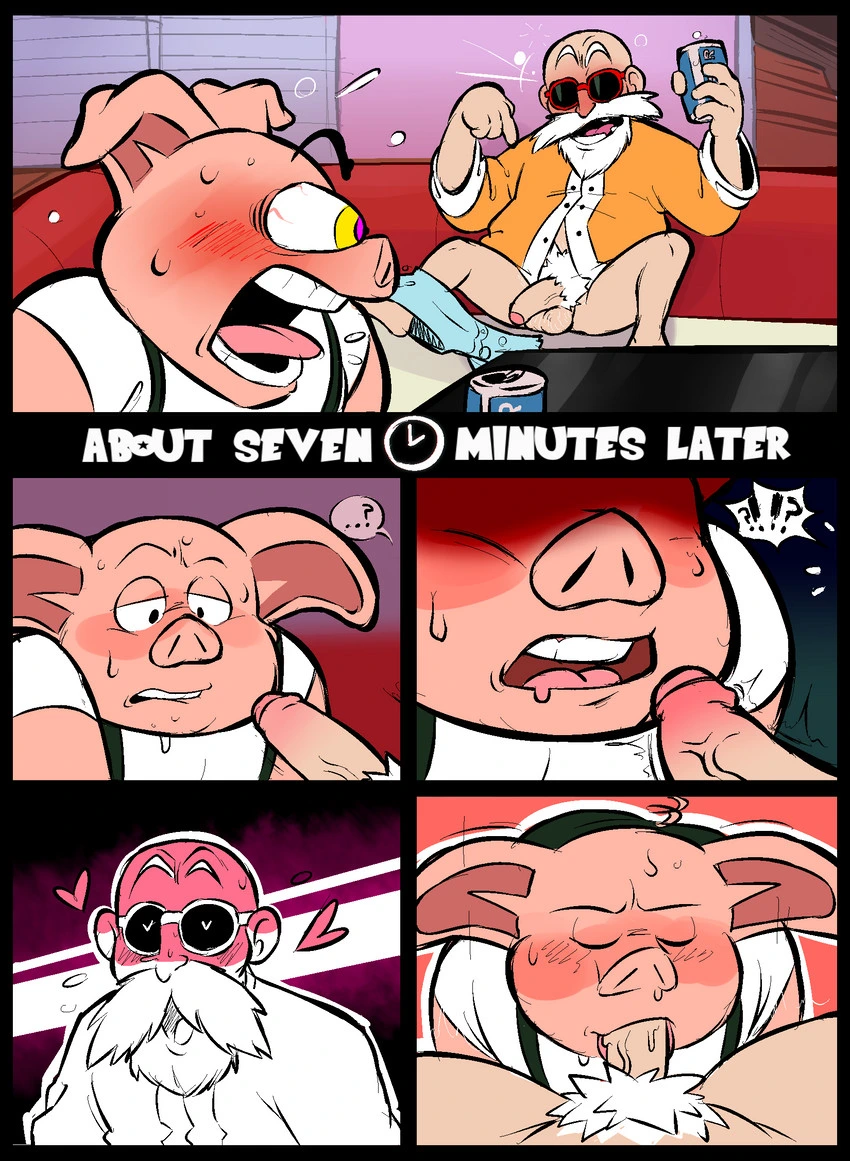 Oolong x Roshi [Dragon Ball] Porn Comics anal Anal Intercourse bald bbm blowjob dragon ball facial hair furry human on furry males only old man pig man sunglasses yaoi