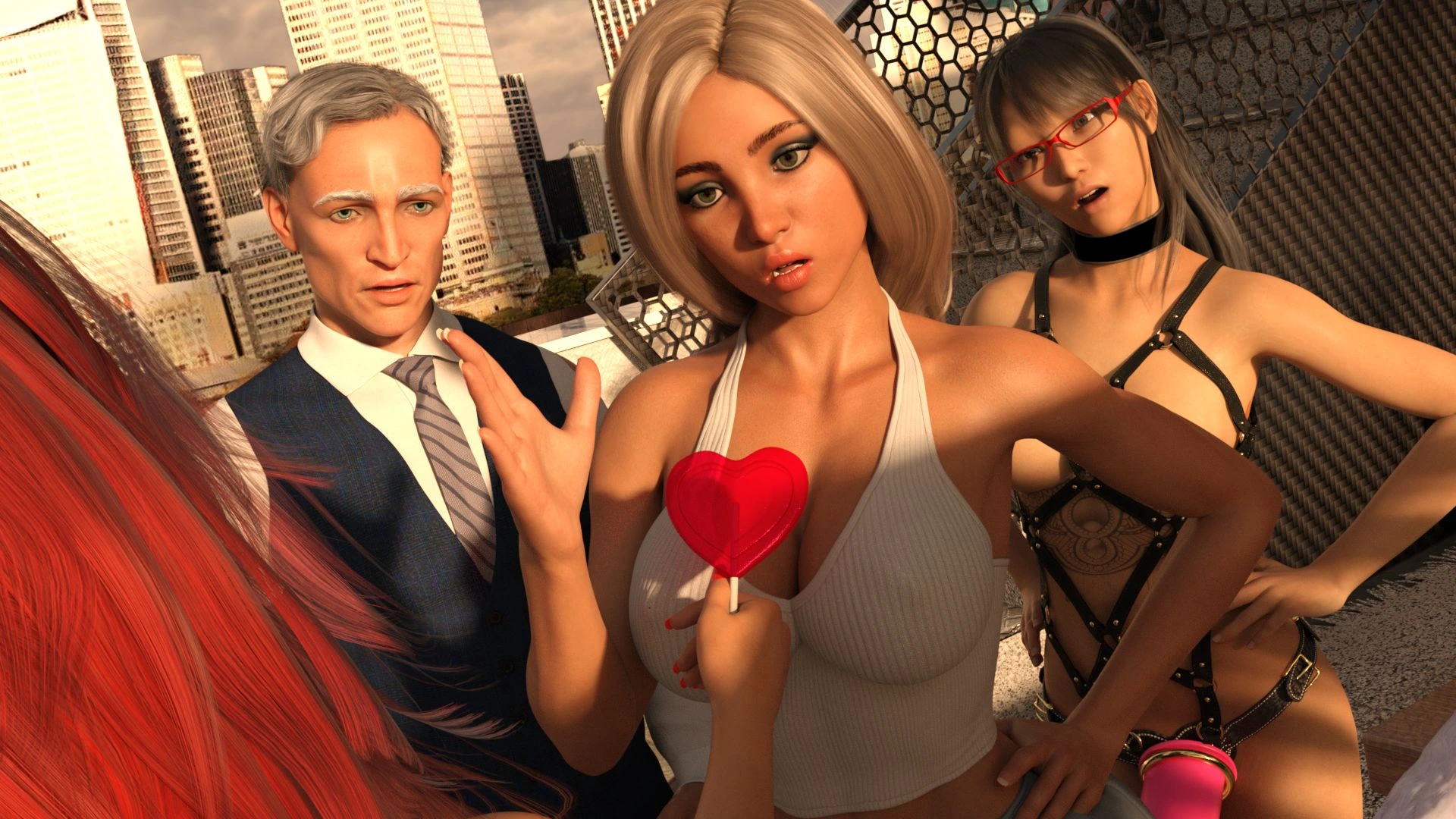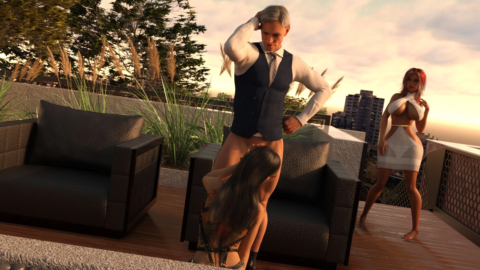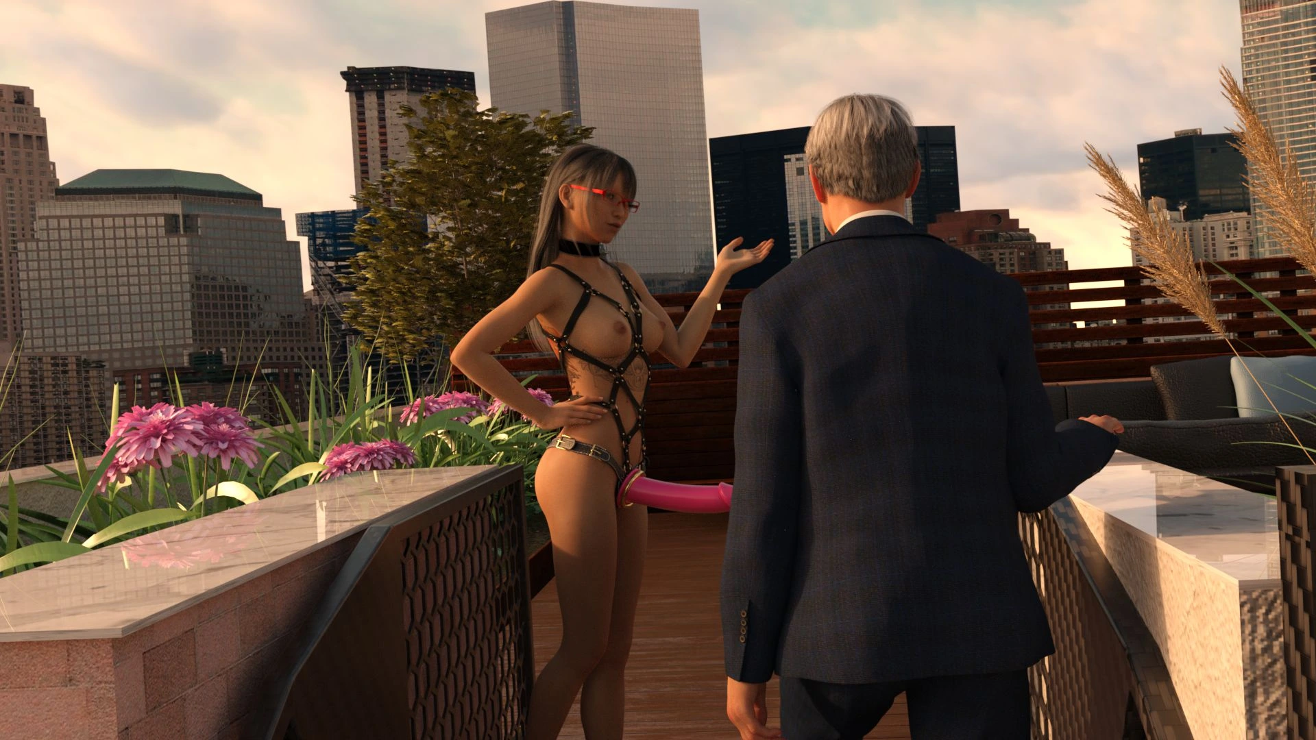 Pandan – Hotwife Rooftop Rendezvous 3D Comics anal big ass Big Breasts cuckold Cumshot femdom lesbian pandan sex toys strap-on threesome tits fuck