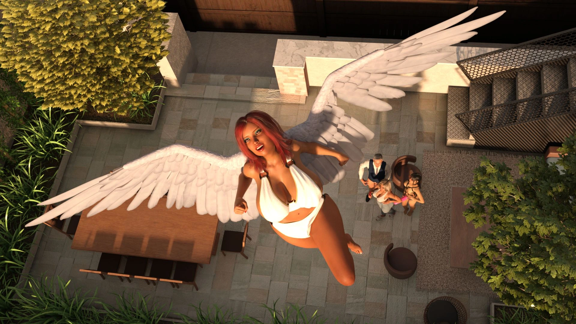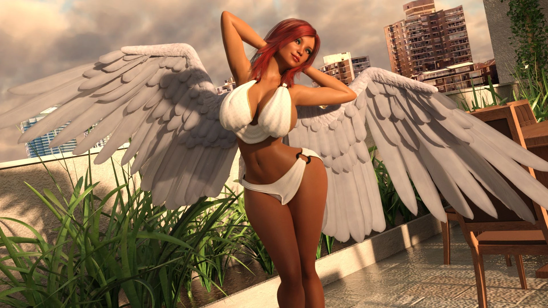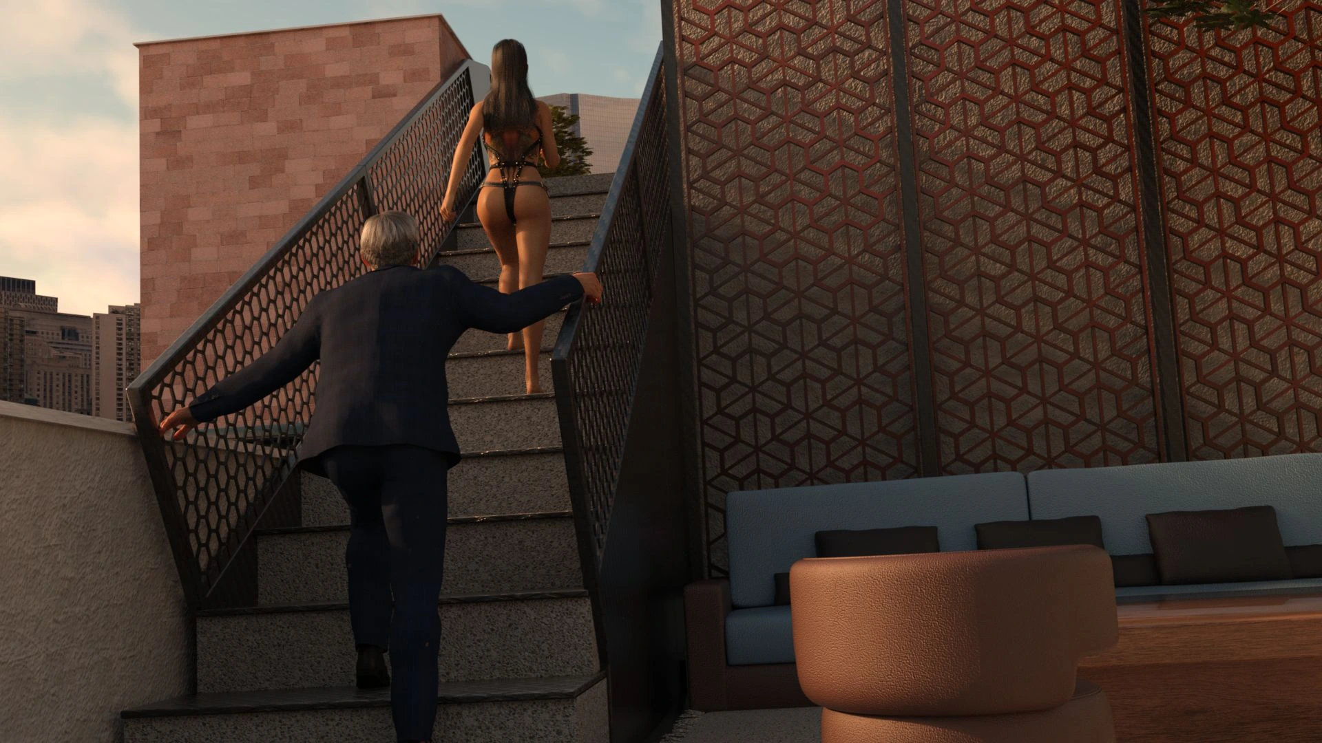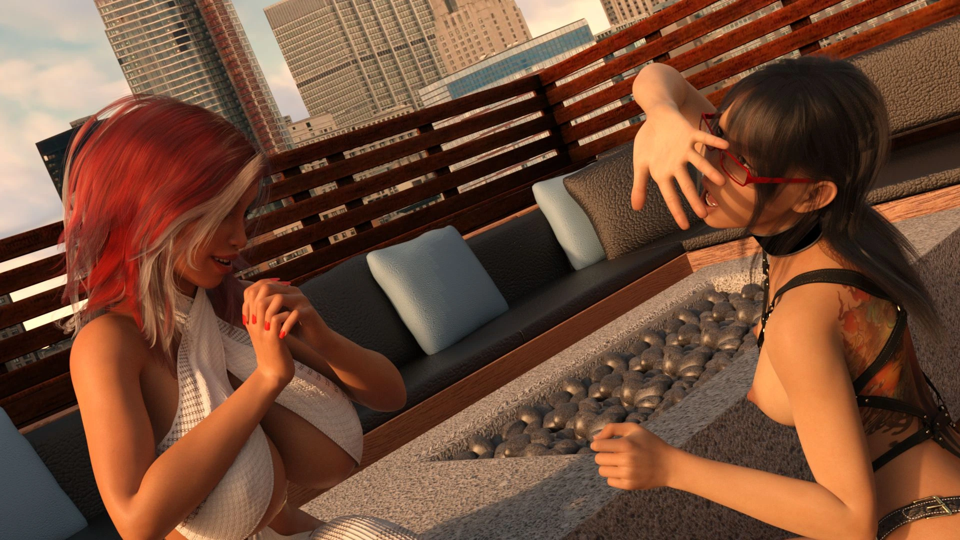 Pandan – Hotwife Rooftop Rendezvous 3D Comics anal big ass Big Breasts cuckold Cumshot femdom lesbian pandan sex toys strap-on threesome tits fuck