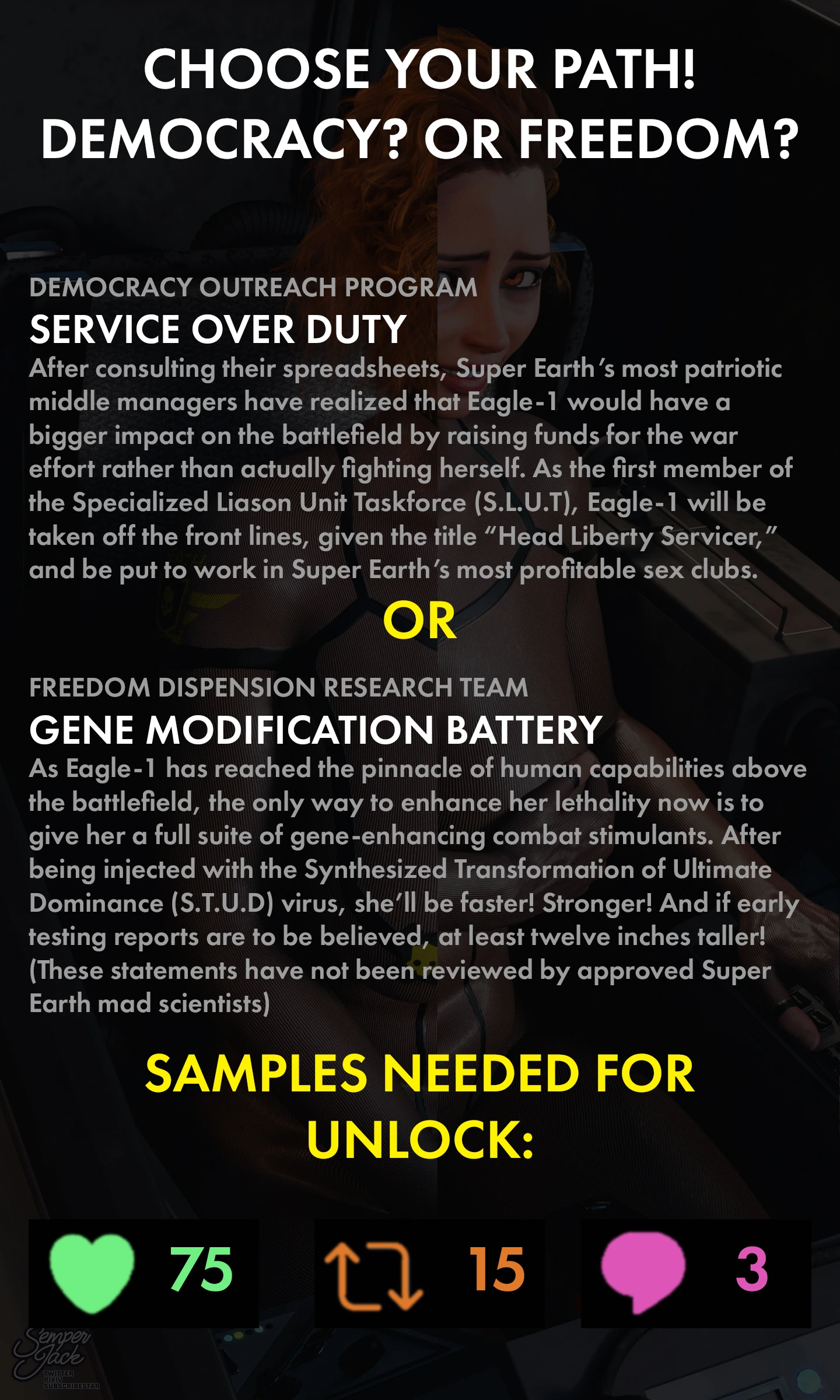 Semper Jack – Helldivers: S.L.U.T Initiative Porn Comics More Comics:Jolly Jack - Foxout BE THE FIRST TO RATE 5 Stars Rate 5 stars 4 Stars Rate 4 stars 3 Stars Rate 3 stars 2 Stars Rate 2 stars 1 Star Rate 1 star bunny girl corruption helldivers latex mind control pregnant semper jack waitress