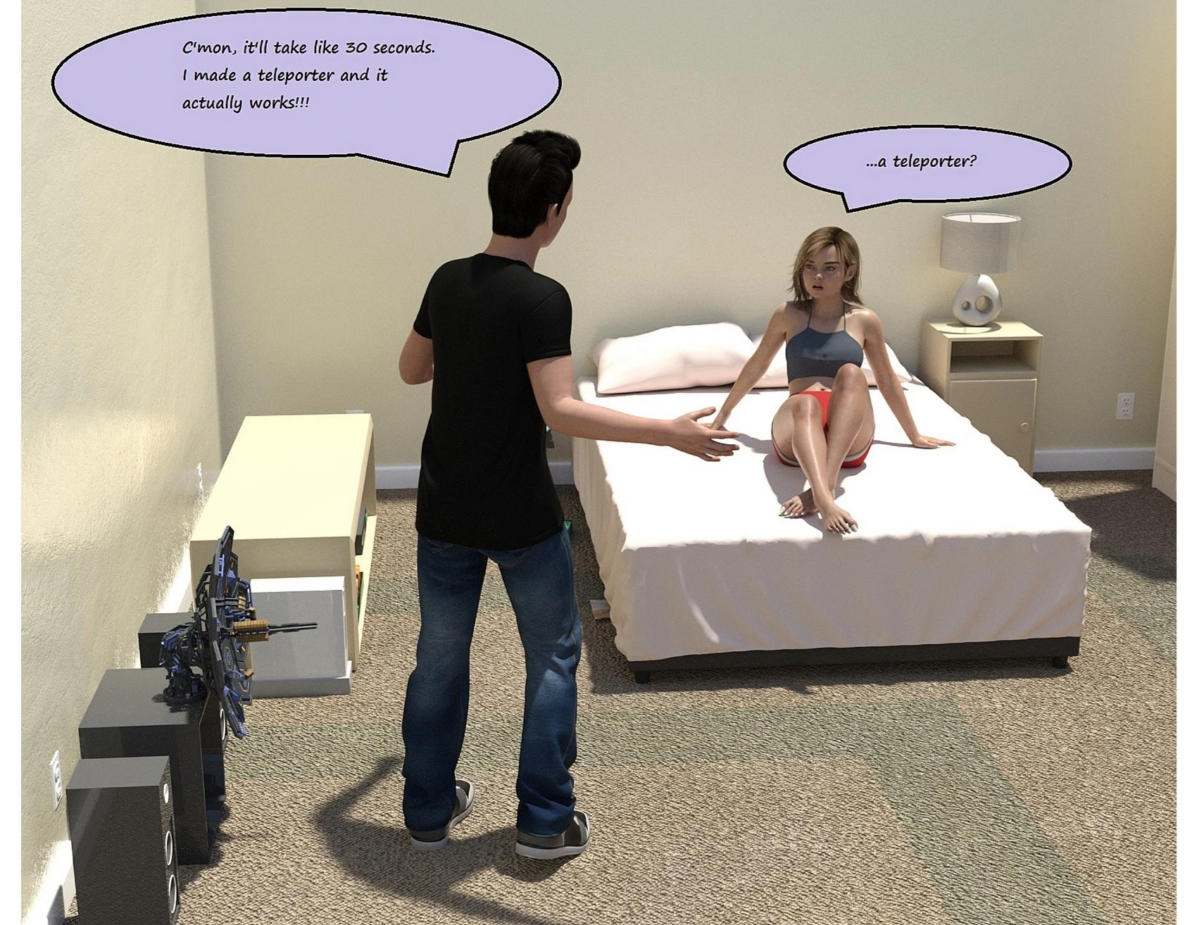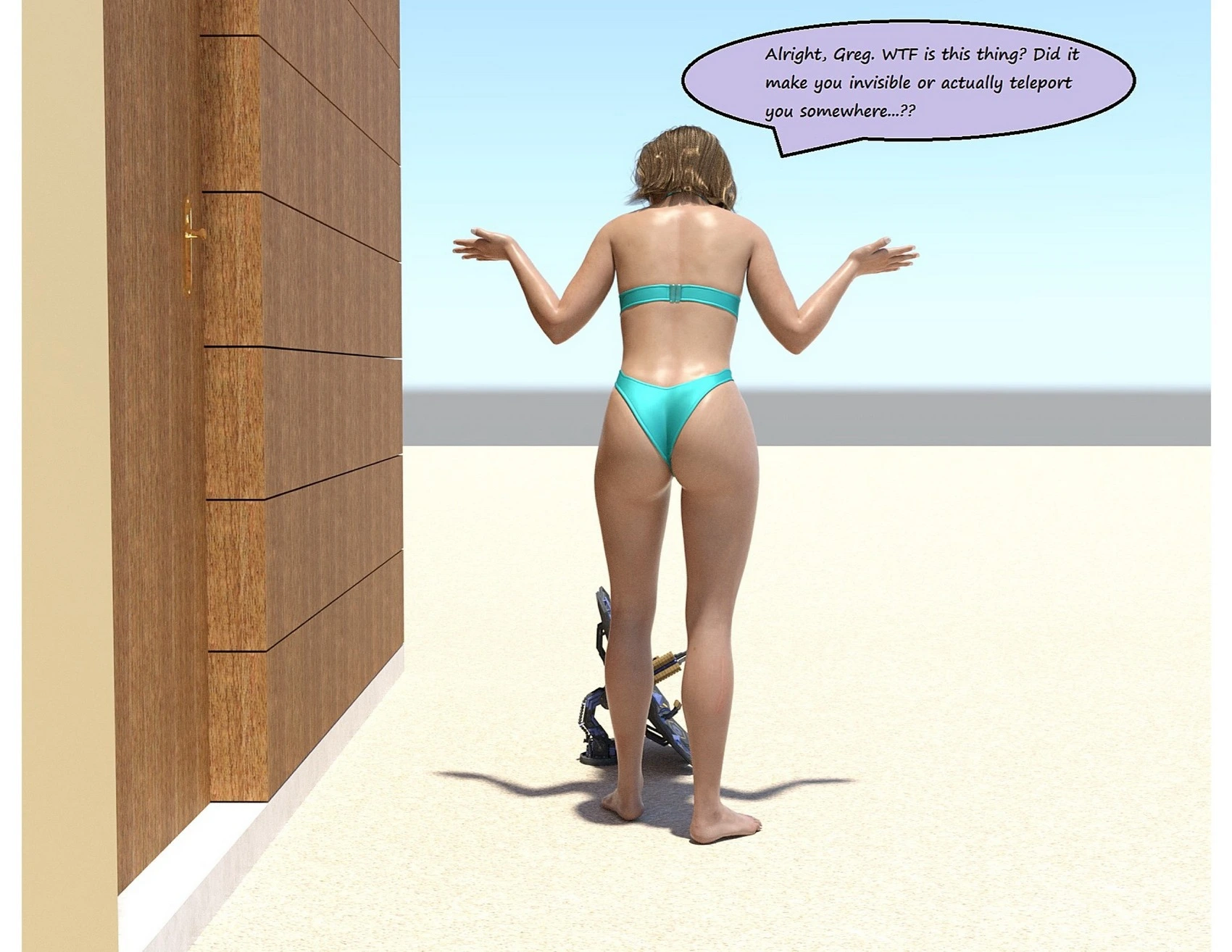 Sizechange – The Teleporter 3D Comics big ass Big Breasts giantess growth Milf mini girl mini guy shrinking sizechange