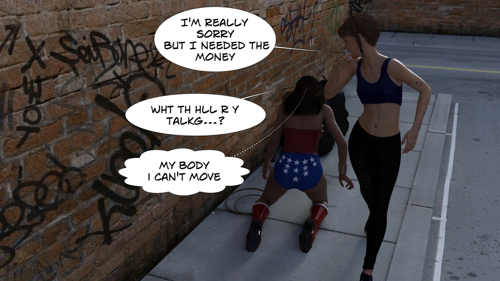 TibComics – The Fall of the Superheroes 3D Comics prison slavery supergirl Superheroine tibcomics wonderwoman