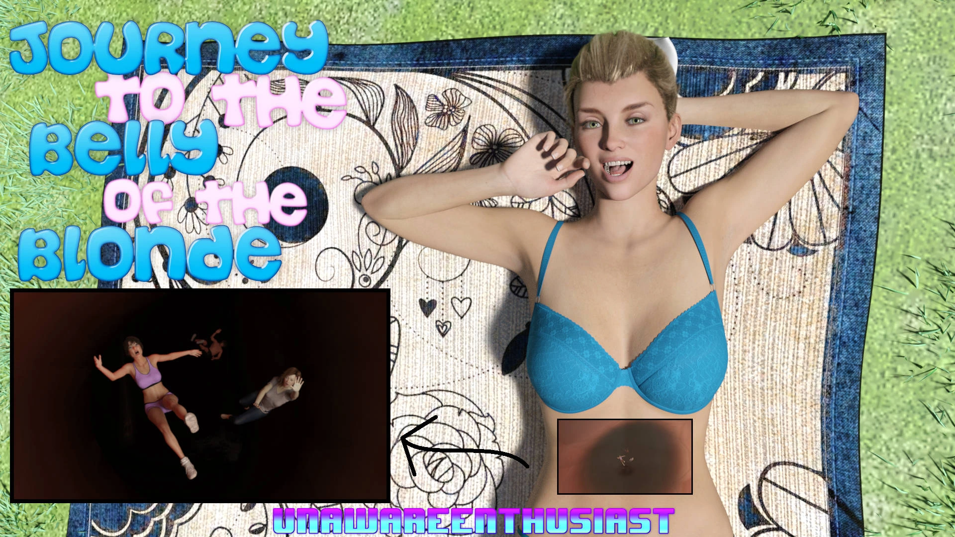 UnawareEnthusiast – Journey to the Belly of the Blonde 3D Comics crush giantess mini girl mini guy shrinking Unawareenthusiast vore