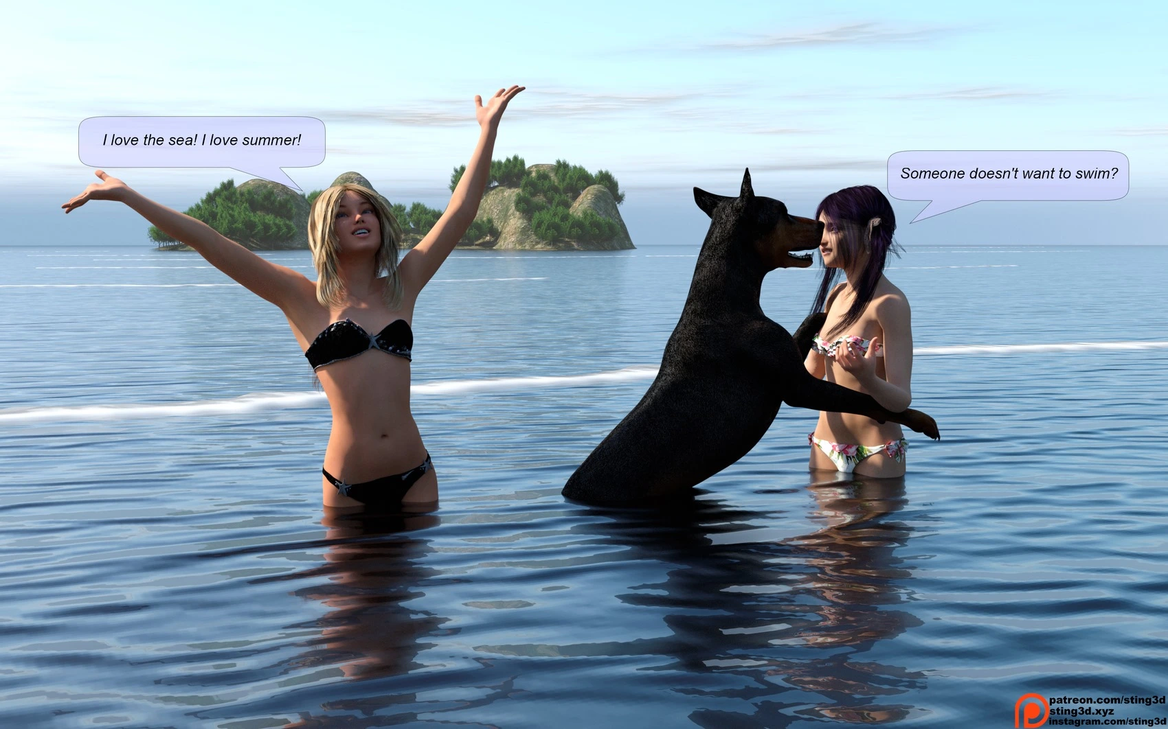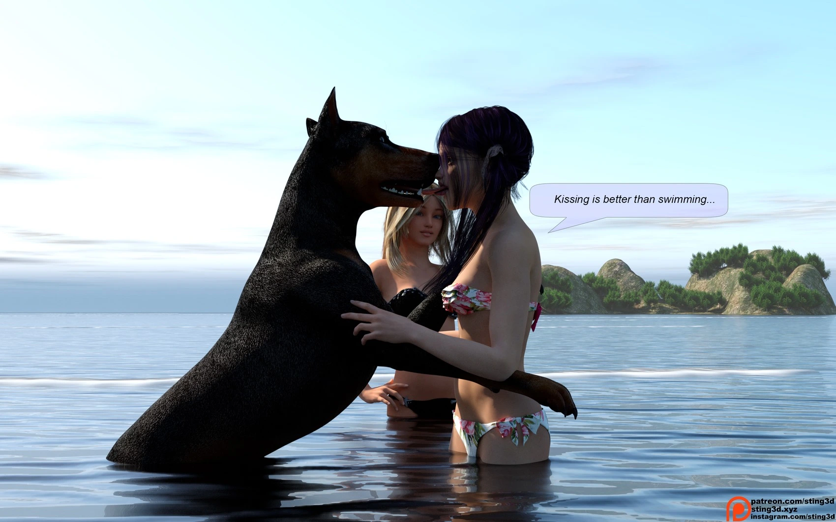 Vacations with Buddy 4 – Sting3D 3D Comics dog doggystyle kissing pregnant small tits Sting3D Swimsuit
