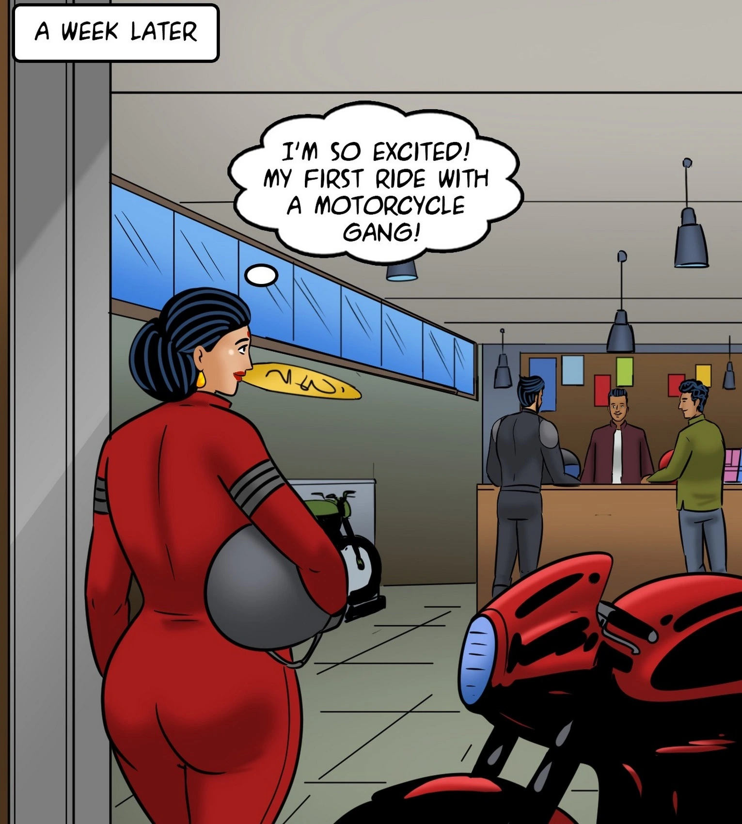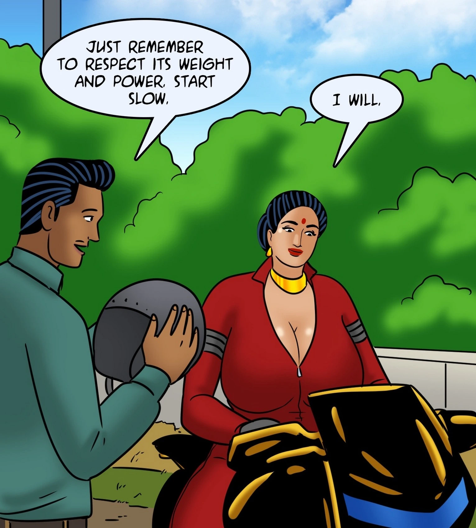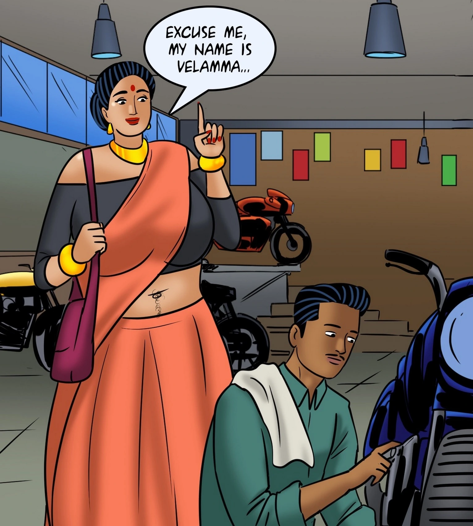 Velamma 119 – Biker Babe Porn Comics big ass Big Breasts blowjob cheating handjob indian Milf Velamma