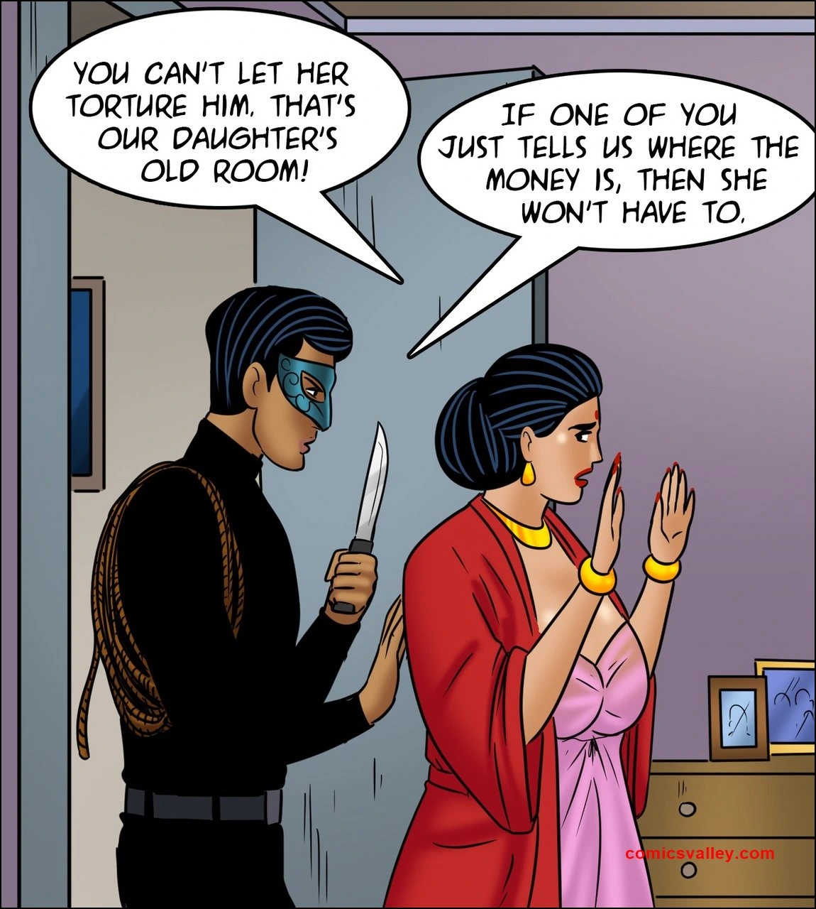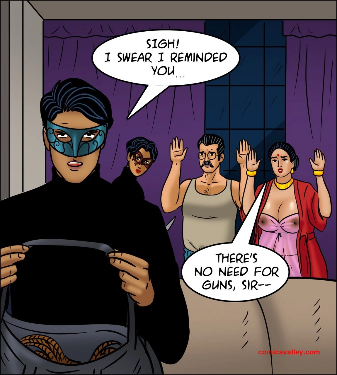 Velamma Ep.112 – Home Invasion Porn Comics Big Breasts blowjob bound burglar cunnilingus f@rced hairy Housewife Masturbation Milf threesome Velamma