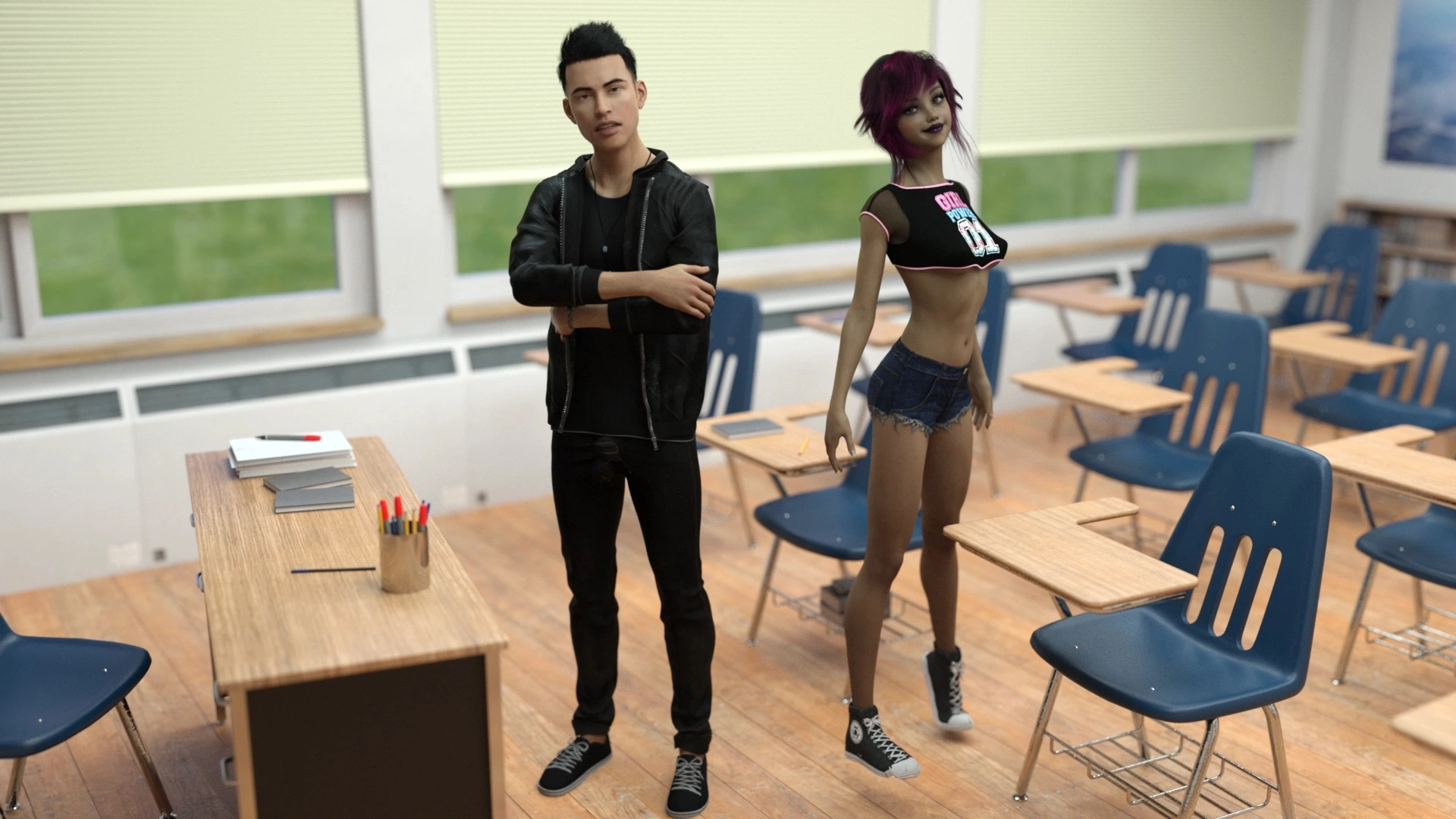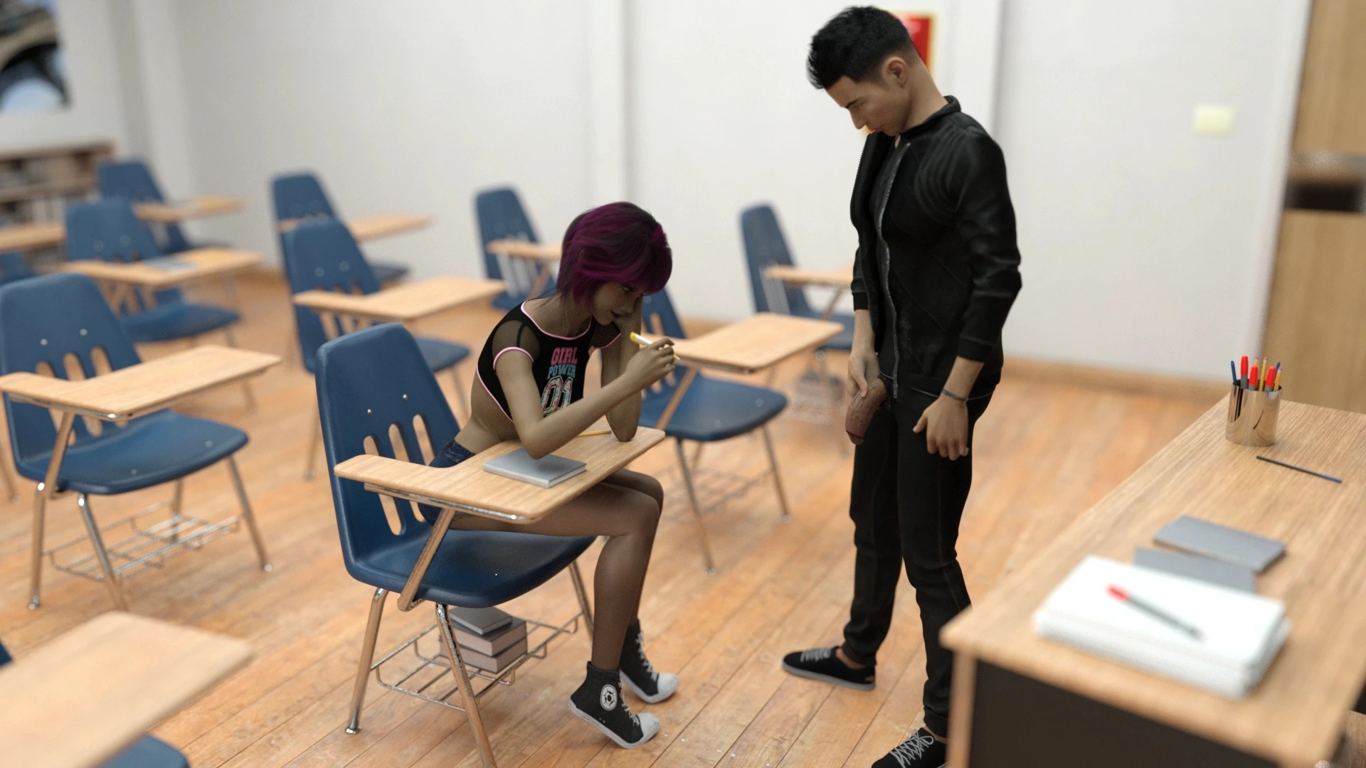 Viitgames – Siblings Caught Teacher Smoking At School 3D Comics blackmailing blowjob bro-sis cum on face f@rced handjob Incest siblings teacher threesome viitgames