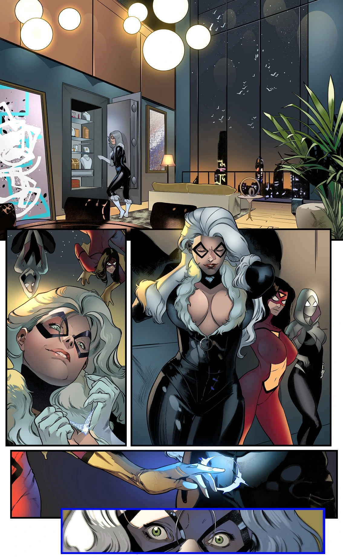 [Xgeek] The Cat and the Spiders (Spider-Man) Porn Comics black cat Bodysuit eyemask futanari group Gwen stacy lesbian parody spider woman spiderman threesome xgeek